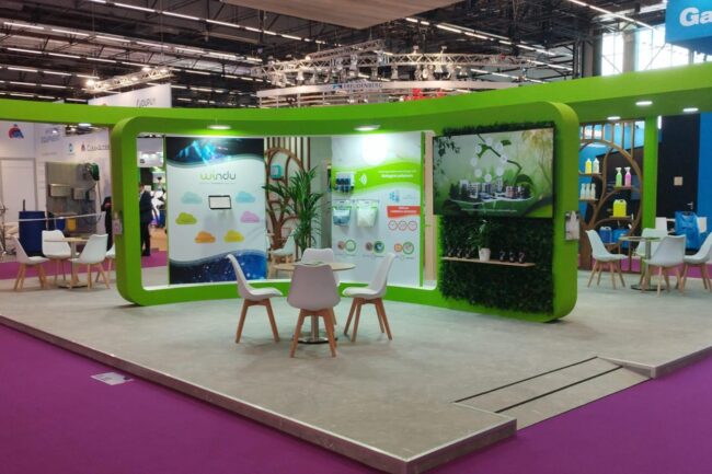 Montaje del stand INDUQUIM en la feria INTERCLEAN 2024, en Amsterdam.