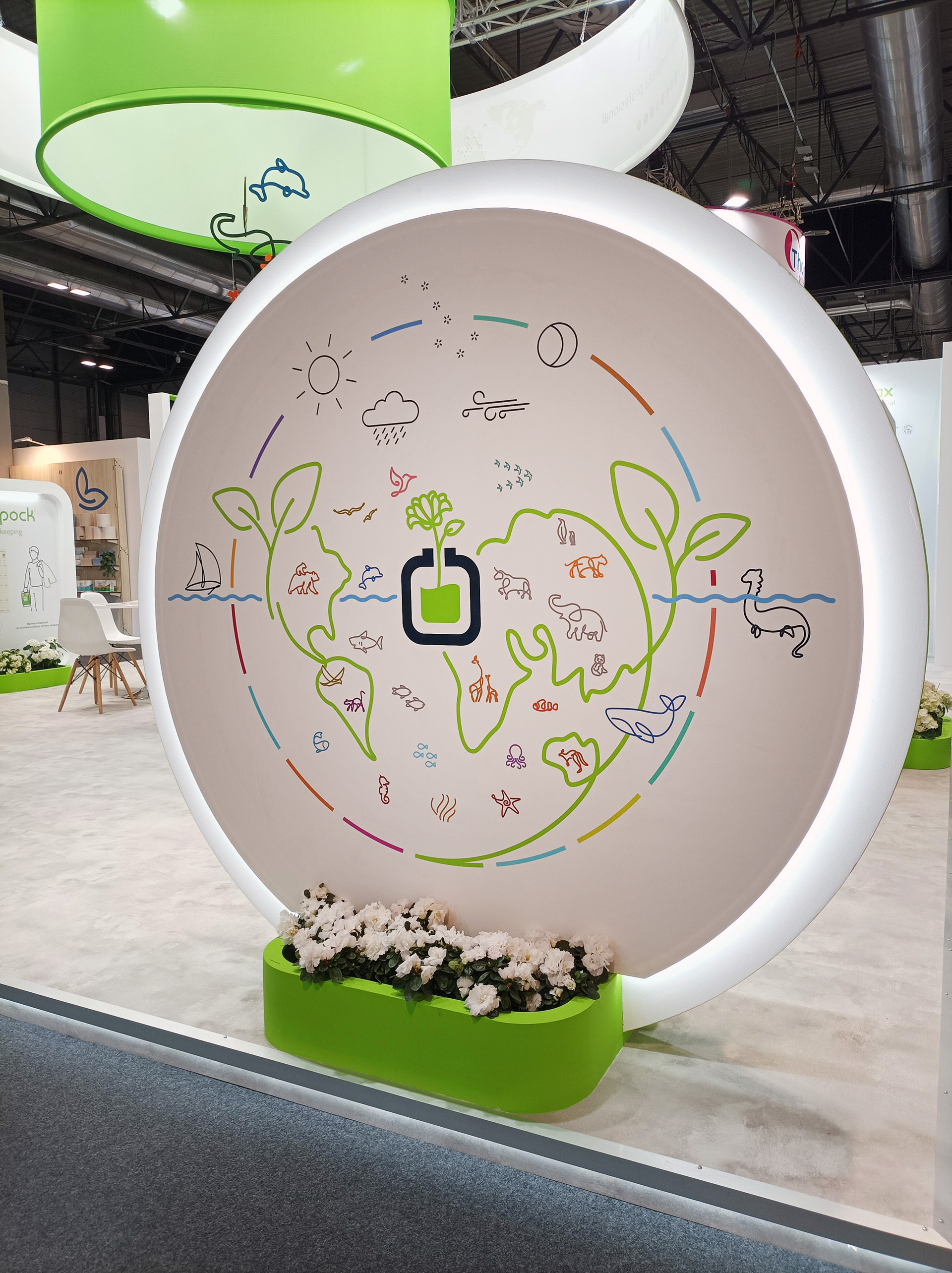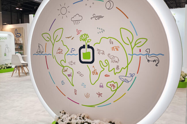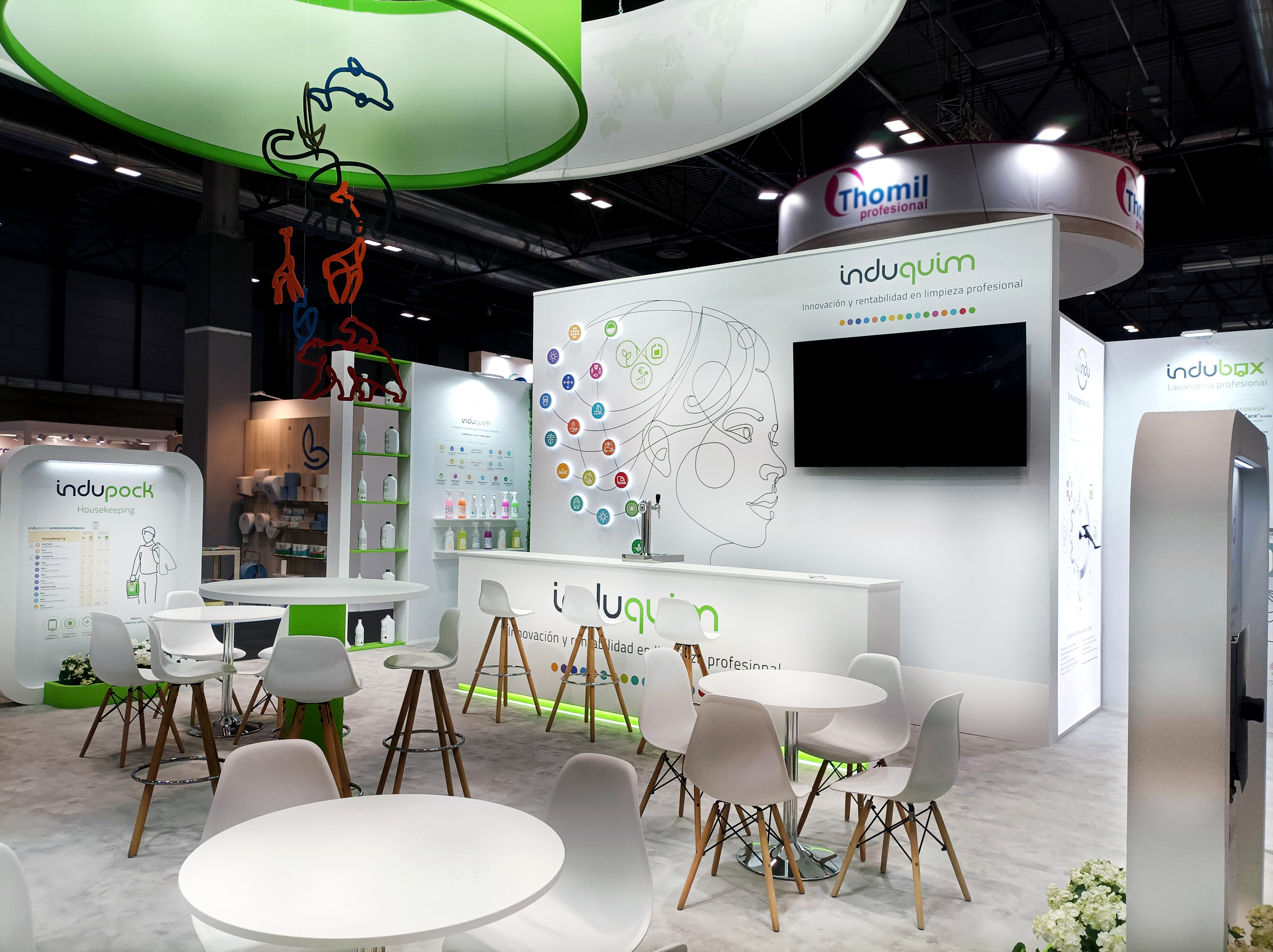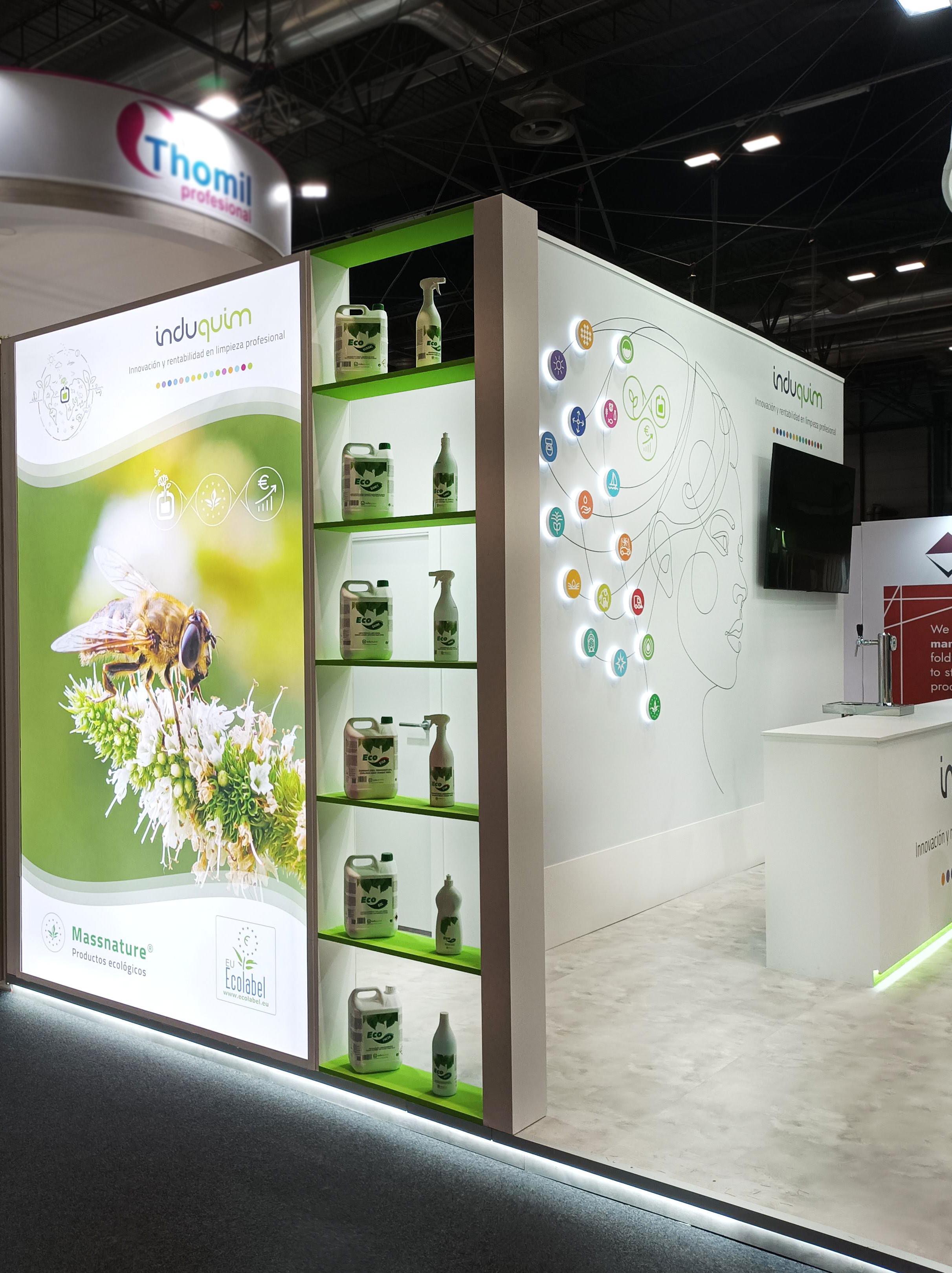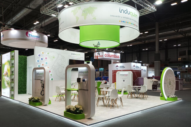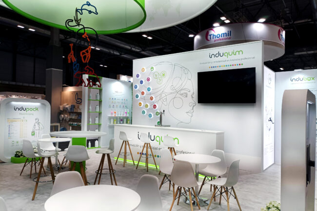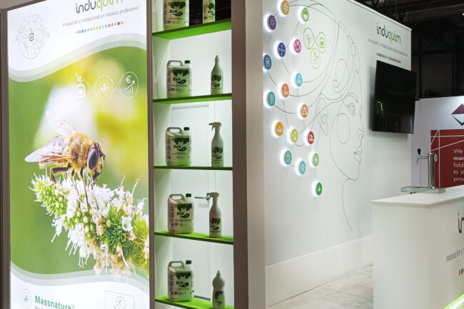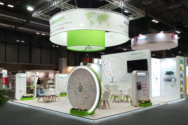 Montaje del stand INDUQUIM en la feria HYGIENALIA 2025, en Madrid.