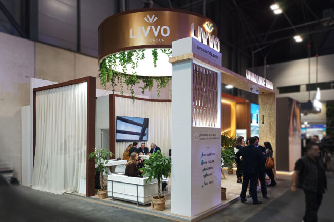 Diseño y montaje de stand LIVVO en FITUR 2025 (Madrid).