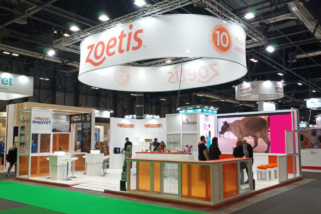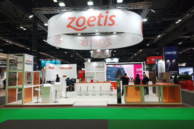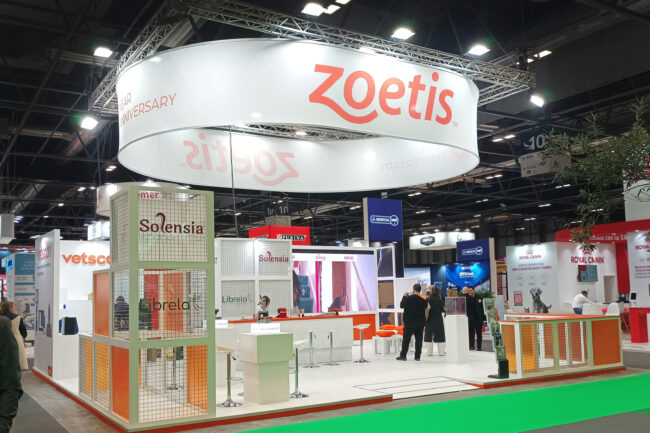 Diseño y montaje de stand ZOETIS en Salón PROPET 2023 (Madrid) para UNO Comunicación.